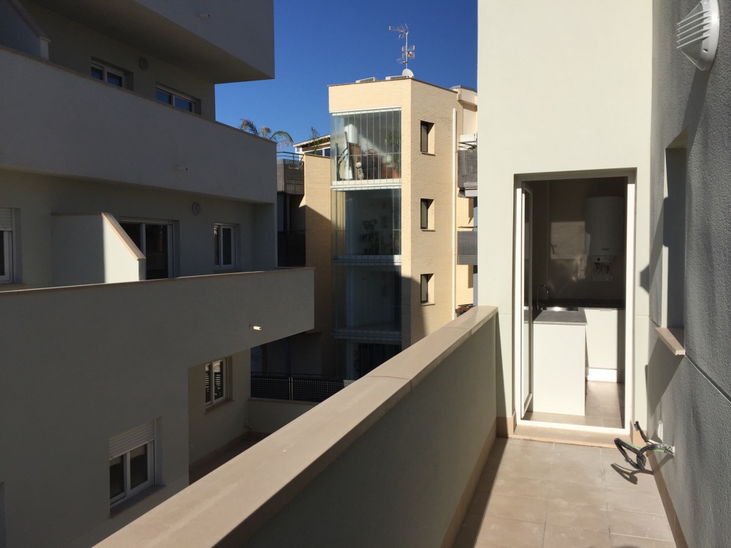 Extensa terraza ideal para cualquier actividad al exterior. Cocina integrada en salón comedor. Comunicación directa del salón a la terraza.